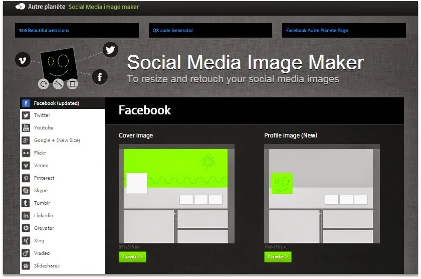 Es fácil de manejar, simplemente arrastra tu imagen a la red social de destino y esta app se encarga de darle el formato adecuado para fondos y avatares de Facebook, Twitter, Flickr, Pinterest, LinkedIn, Youtube y muchos más.